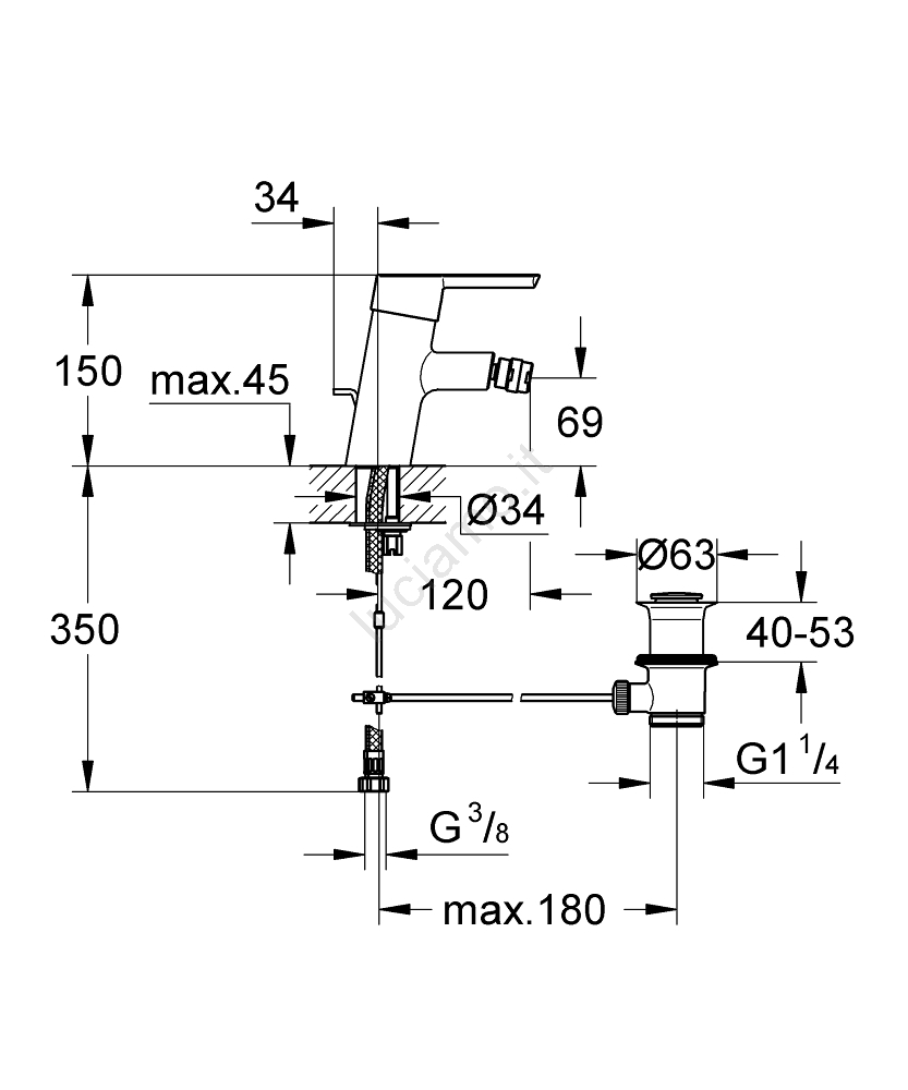 • Miscelatore monocomando per bidet con installazione a foro singolo per un montaggio semplice.