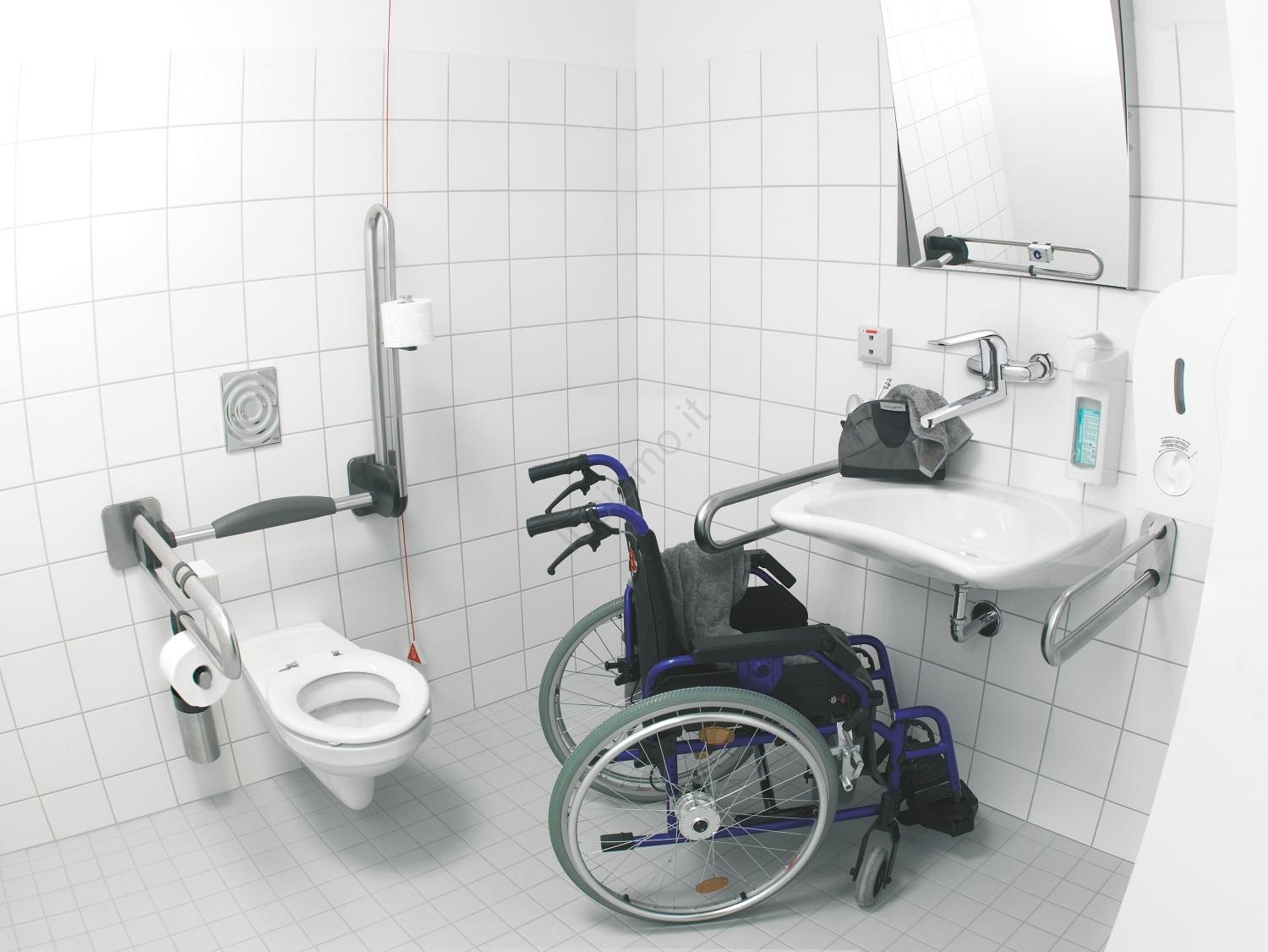 • Miscelatore a parete con leva per lavabo, ideale per strutture sanitarie e di assistenza.
