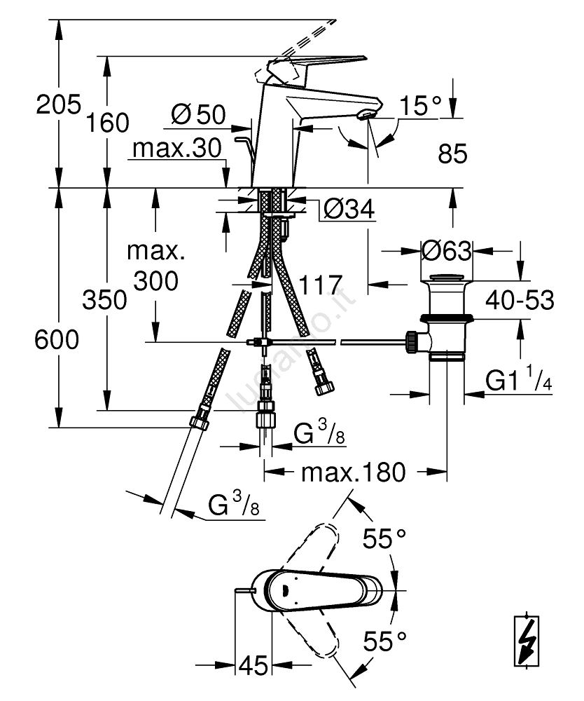 • Sistema d'installazione GROHE FastFixation con supporto centrante per un montaggio rapido e preciso.