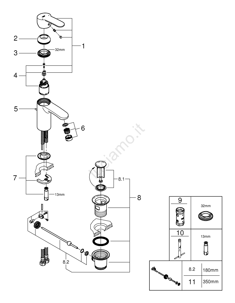 • Finitura GROHE Long-Life assicura resistenza ai graffi e lucentezza durevole.