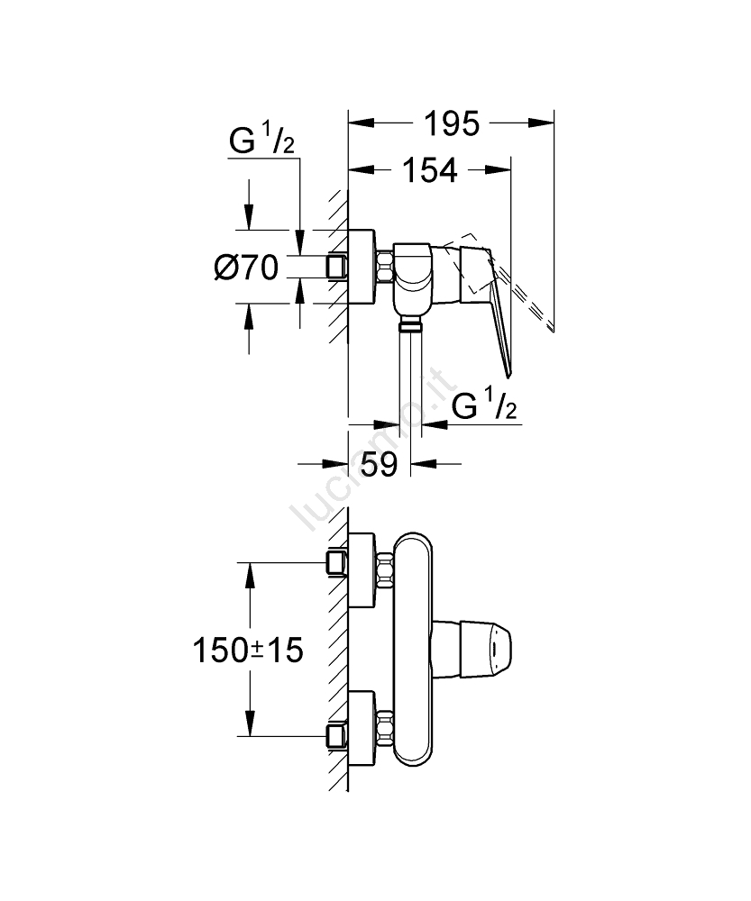 • Miscelatore doccia a leva da parete per un'installazione semplice.