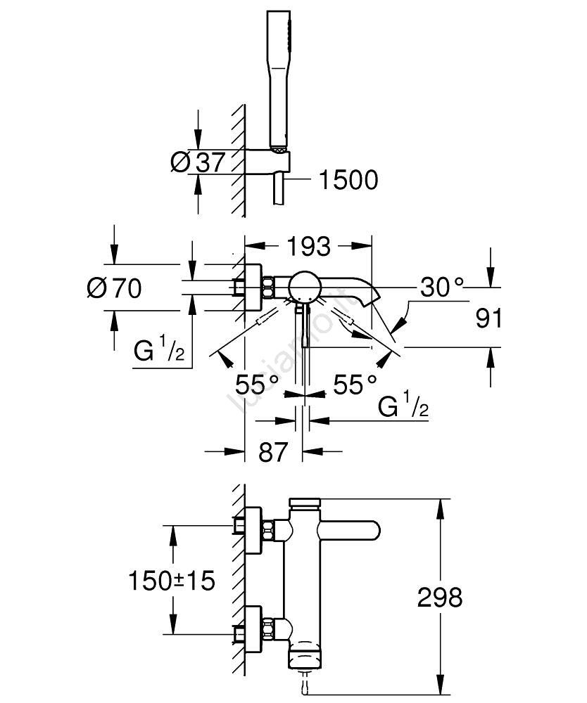 • Supporto a parete per doccia Tempesta Cosmopolitan 100 (27 594 000).