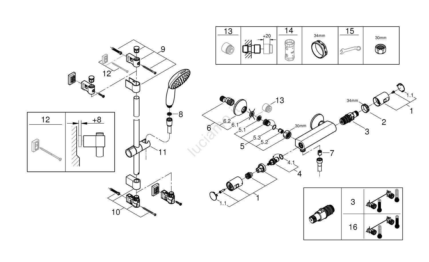 GROHE 34597001 - Miscelatore termostatico per doccia PRECISION START DN 15 cromato