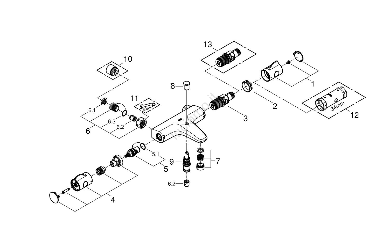 GROHE 34754000 - Miscelatore termostatico per vasca GROHTHERM 800 DN 15 cromo lucido