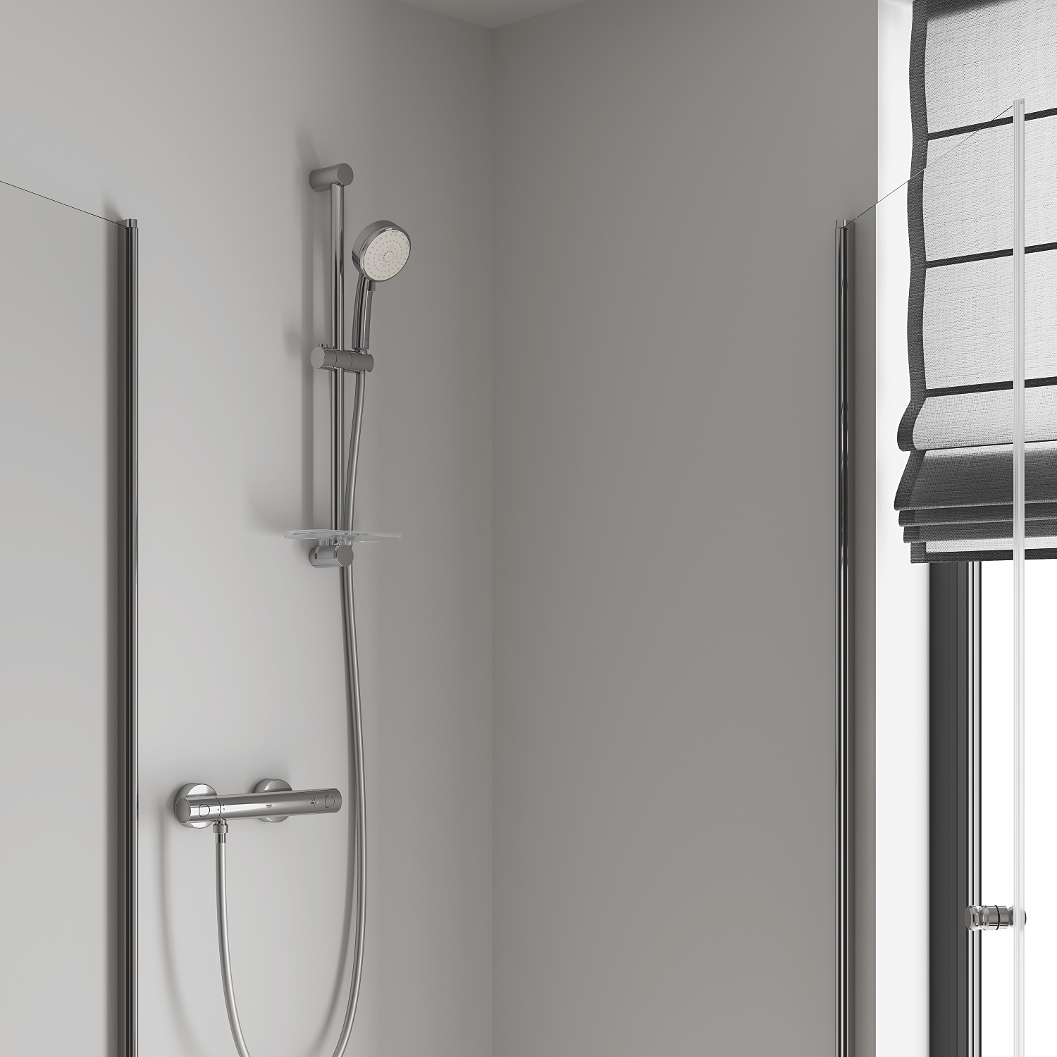 • Miscelatore doccia termostatico da parete per un'installazione semplice.