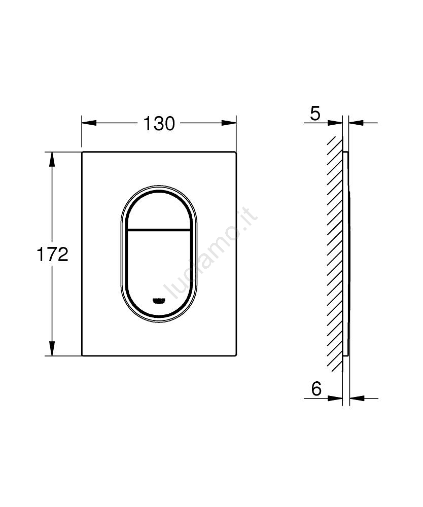• Dimensioni compatte 130 × 172 × 5 mm per un'integrazione discreta in bagno.