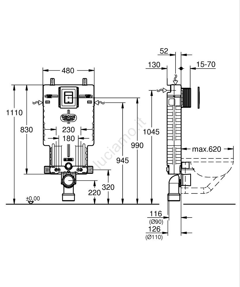 • Include l'elemento di installazione incassato GROHE Uniset per WC (38 643 001).