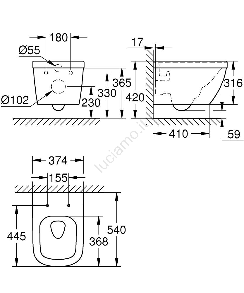 GROHE 39328000 - WC sospeso EURO CERAMIC 540 × 374 mm ceramica/bianco