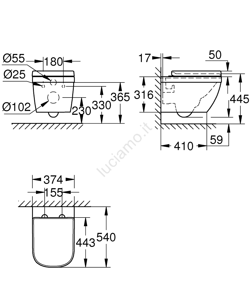 • Dimensioni WC: 540 x 374 mm, ideale per bagni moderni.