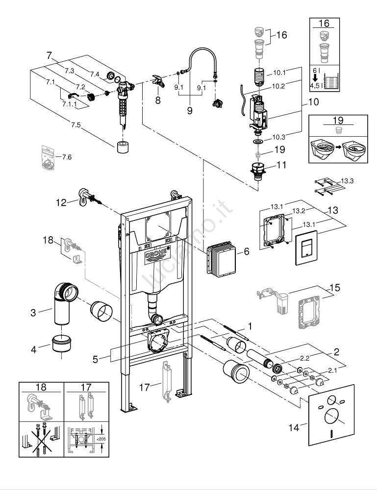 • Set di installazione completo 4 in 1 per WC sospeso con altezza 1,13 m.