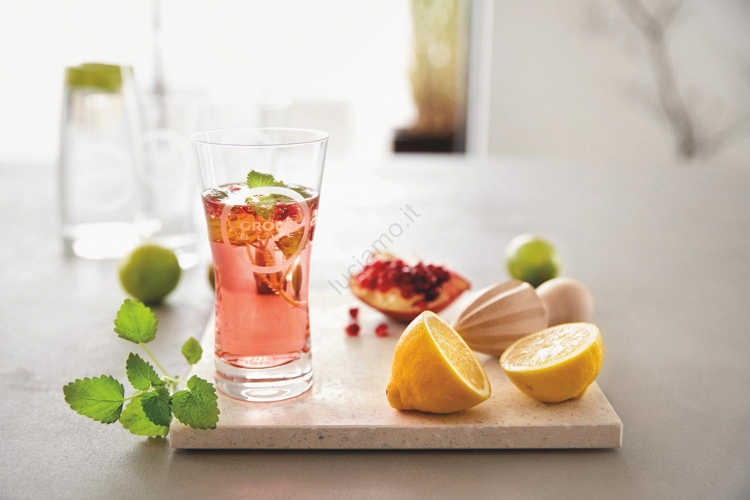 • Il logo discreto GROHE conferisce ai bicchieri un tocco moderno e sofisticato.