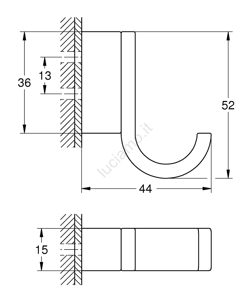 • Gancio elegante per accappatoio della collezione GROHE Selection.