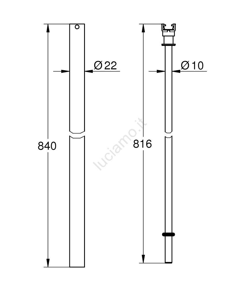 • Per sistemi vasca/doccia ridotto di 60 cm rispetto al tubo originale.