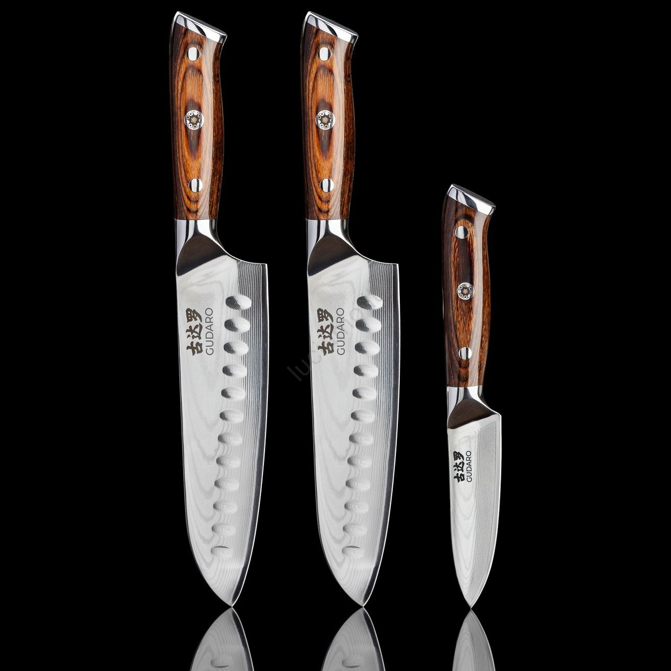 Gudaro - SET 2x coltello da cucina Santoku FENG 7,5", in acciaio damasco a 67 strati, lama 18 cm + 1x GRATIS coltello da cucina in acciaio damasco FENG 3,5", a 67 strati, lama 9,5 cm