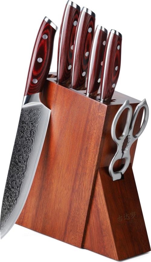 Gudaro - Set di 7 coltelli da cucina con ceppo KENSHO in acacia