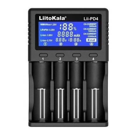 • Liitokala Lii-PD4 è un caricatore intelligente, completamente automatico, universale e di alta qualità con quattro slot.
