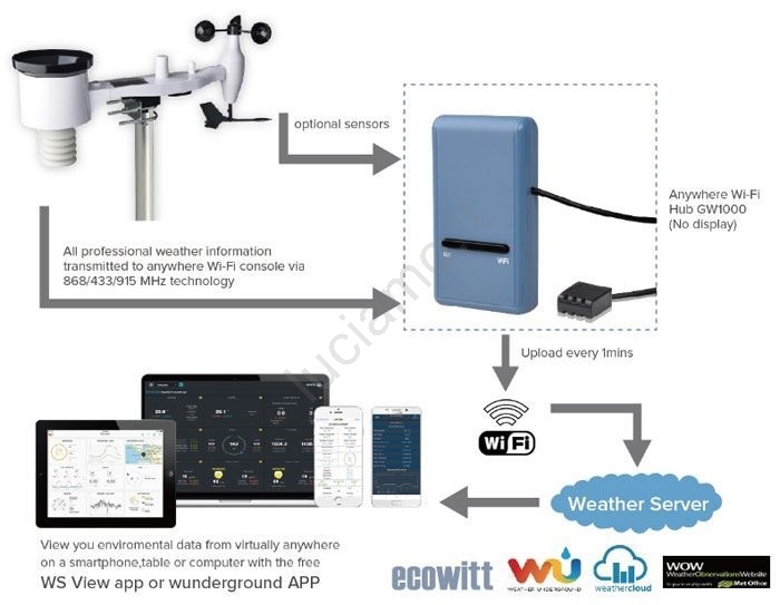 • Il gate WiFi consente di tracciare e archiviare i dati meteo utilizzando l'applicazione mobile gratuita WS Wiew (iOS, Android).