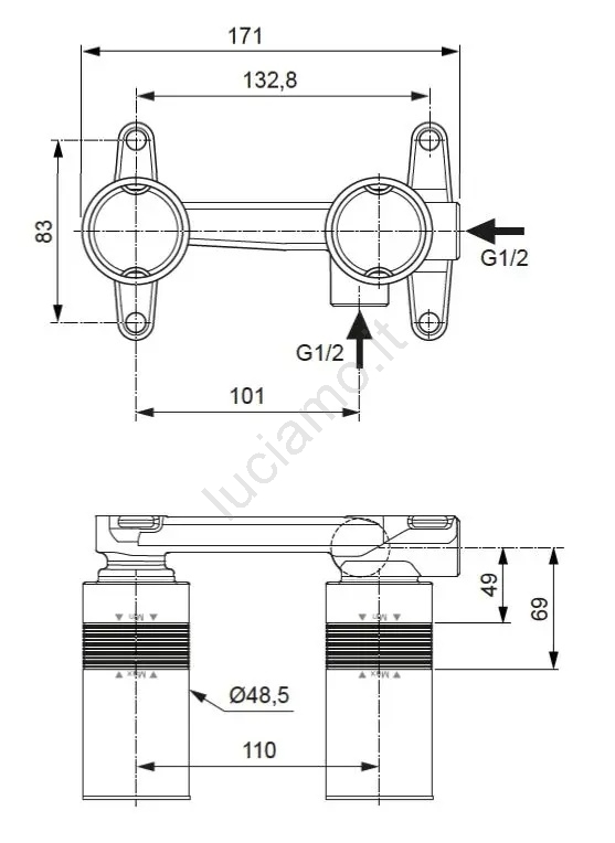 • Il corpo è adatto ai miscelatori da incasso a parete delle serie Conca e Joy di Ideal Standard.