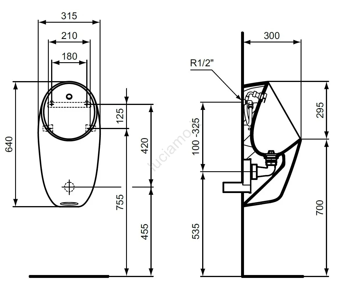 Ideal Standard E253701 - Urinale I.LIFE, attacco acqua posteriore, scarico posteriore, ceramica/bianco