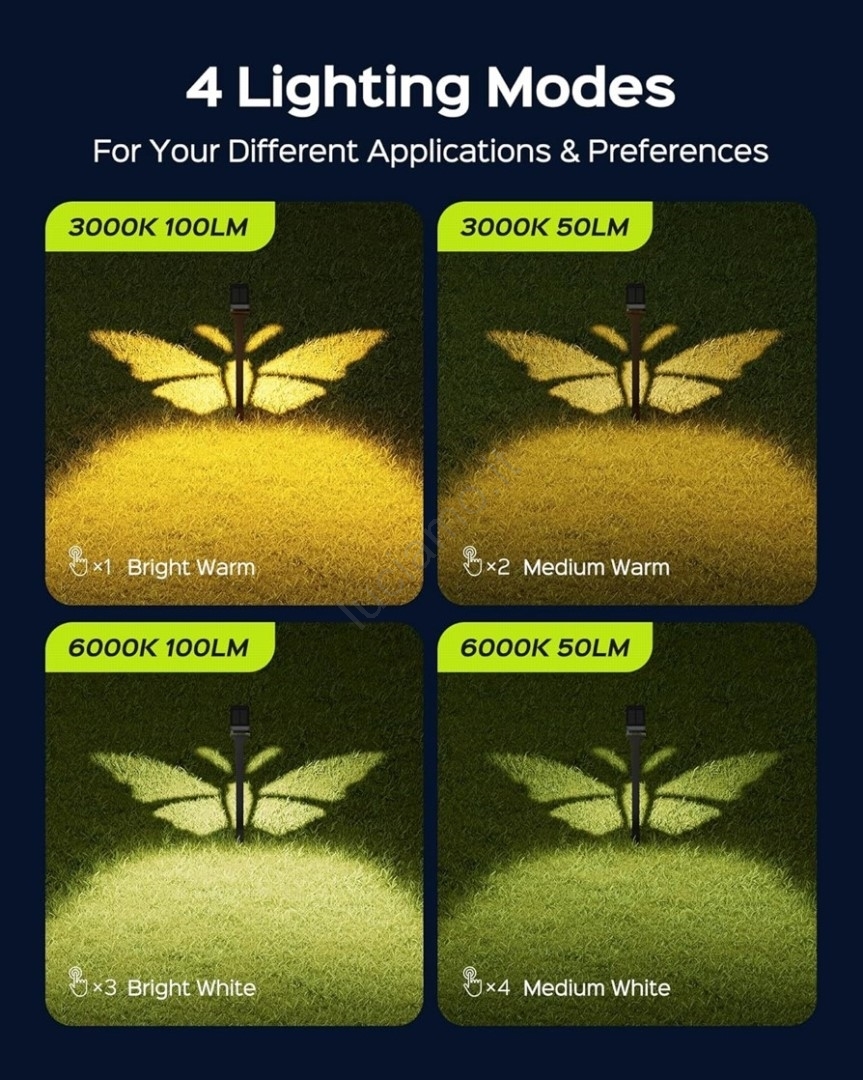 • Quattro modalità luminose con regolazione dell'intensità e del colore della luce.