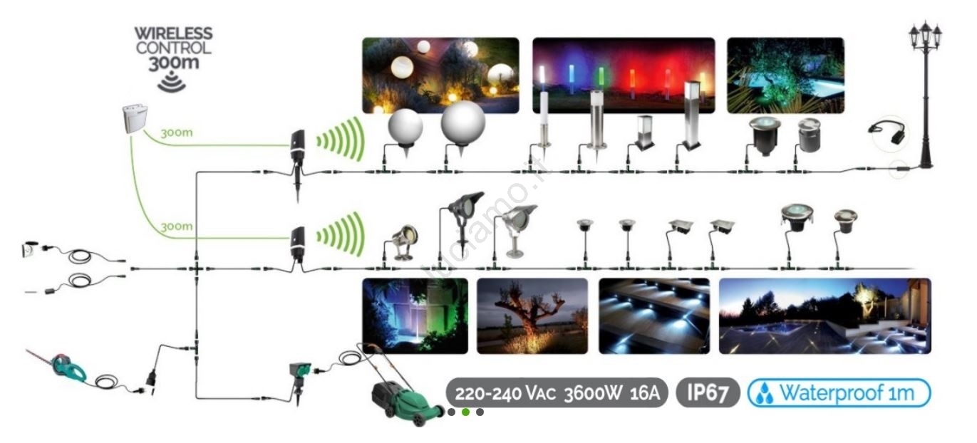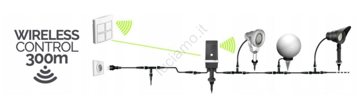 • Con l'interruttore puoi controllare l'illuminazione fino a 300 metri di distanza.