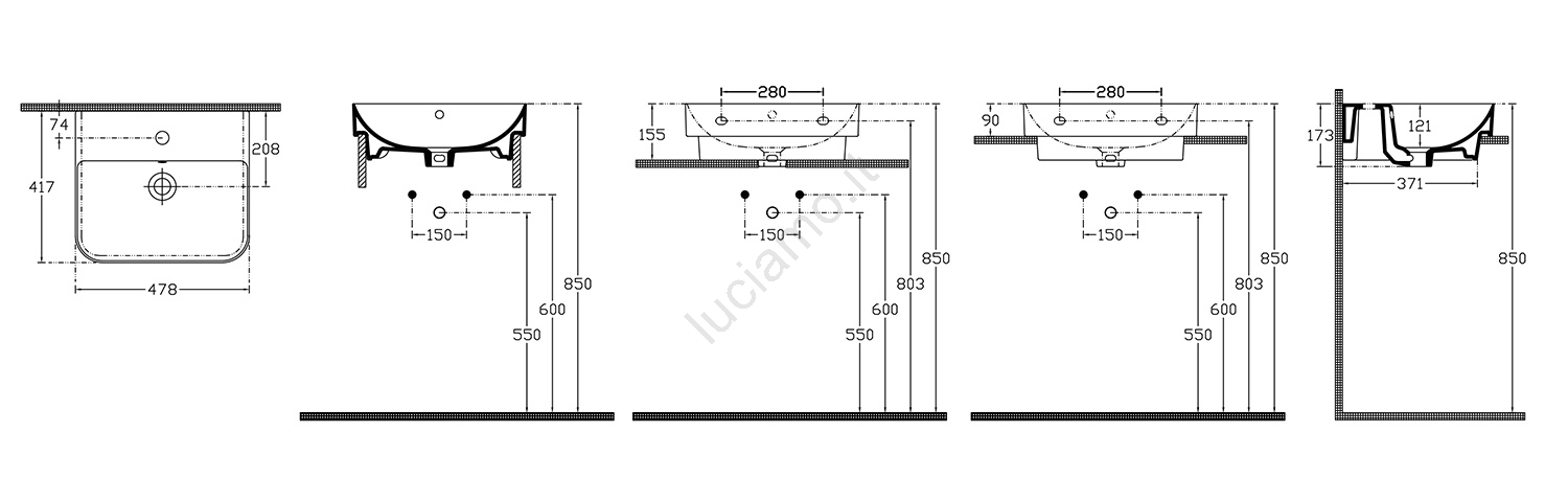 • Può essere sospeso a parete, posizionato su un piano di appoggio o incassato nel top.
