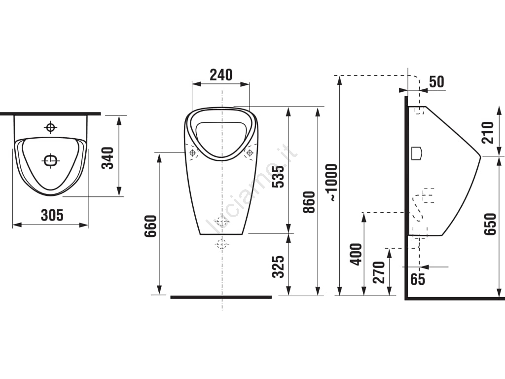 JIKA H8430610000001 - Urinale GOLEM, alimentazione interna, scarico posteriore, ceramica/bianco