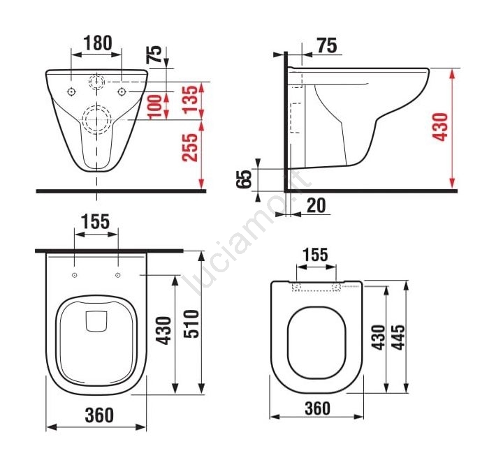 • Il sedile è realizzato in duroplasto di alta qualità, resistente ai graffi.