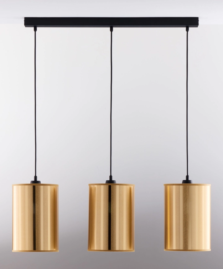 Jupiter 2092 - Lampadario sospeso su cavo CORTINA 3xE27/15W/230V oro/nero caratterizza un design gradevole e funzionale. Per la lampada è adatta una lampadina con attacco E27. Qui puoi acquistare altre lampadine a prezzi vantaggiosi. Avrai un'aggiunta interessante alla tua casa.