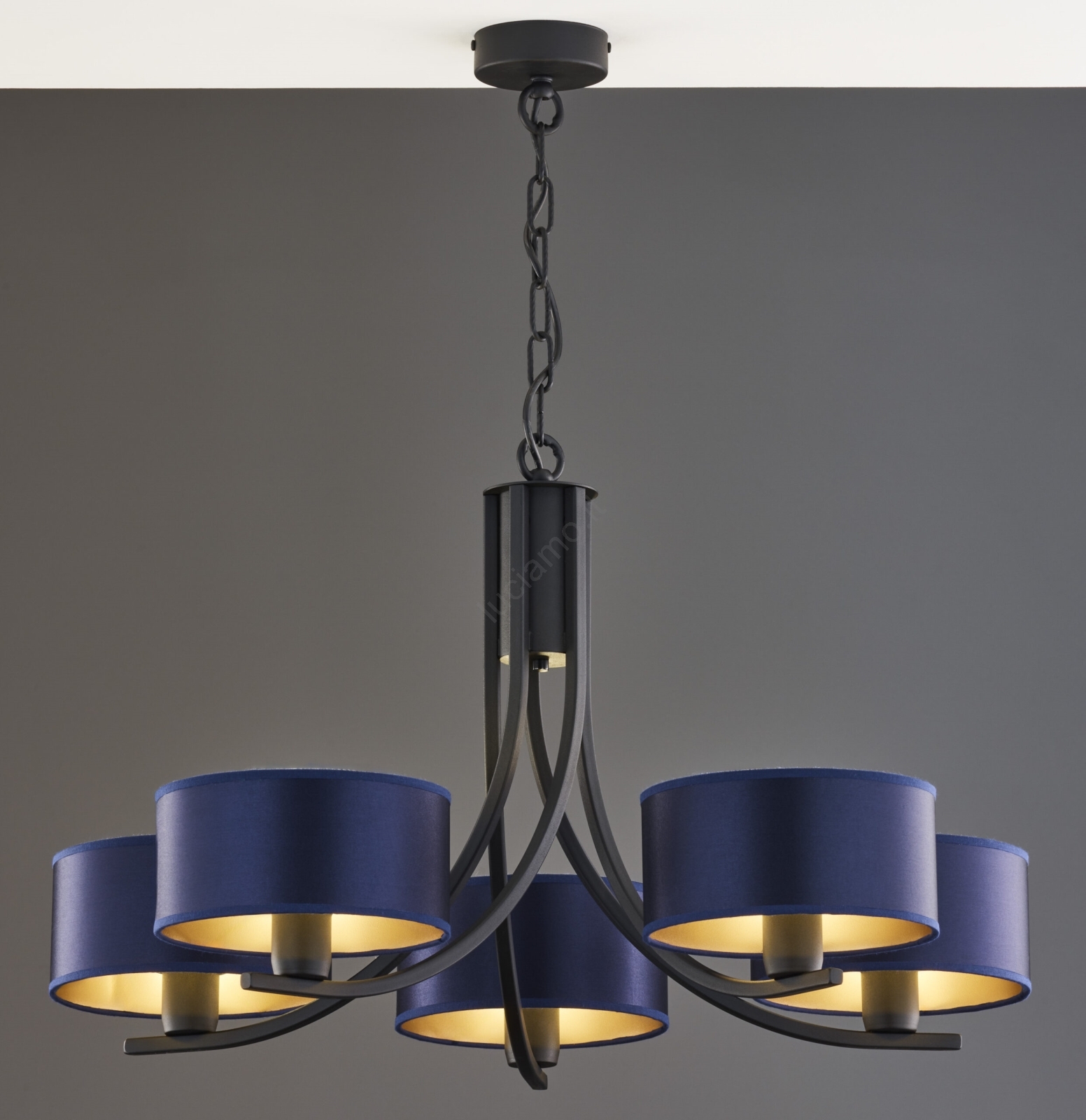 • Jupiter 2101 - Lampadario con catena ARTHUR 5xE27/15W/230V blu/nero