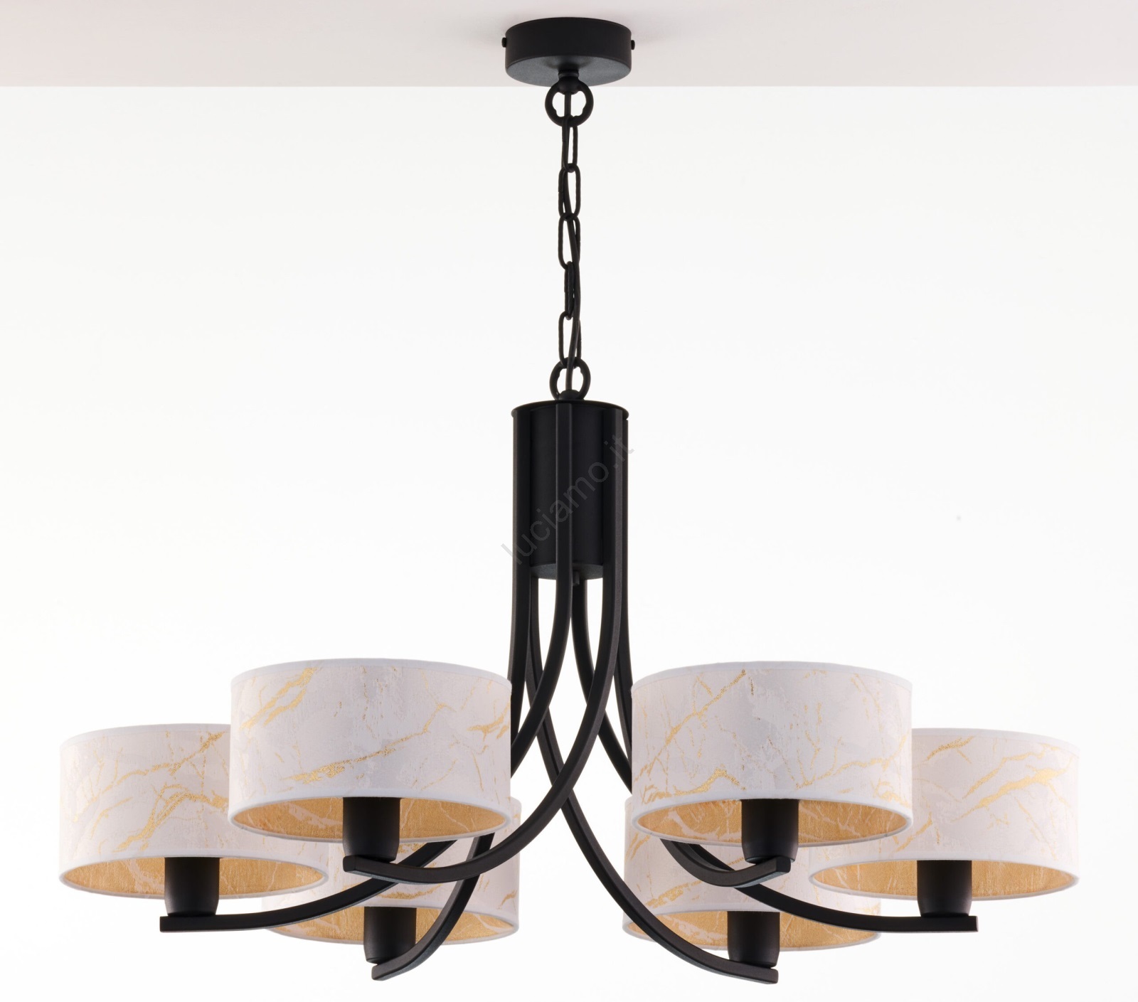 • Jupiter 2105 - Lampadario con catena ARTHUR 6xE27/15W/230V bianco/nero/finitura effetto marmo