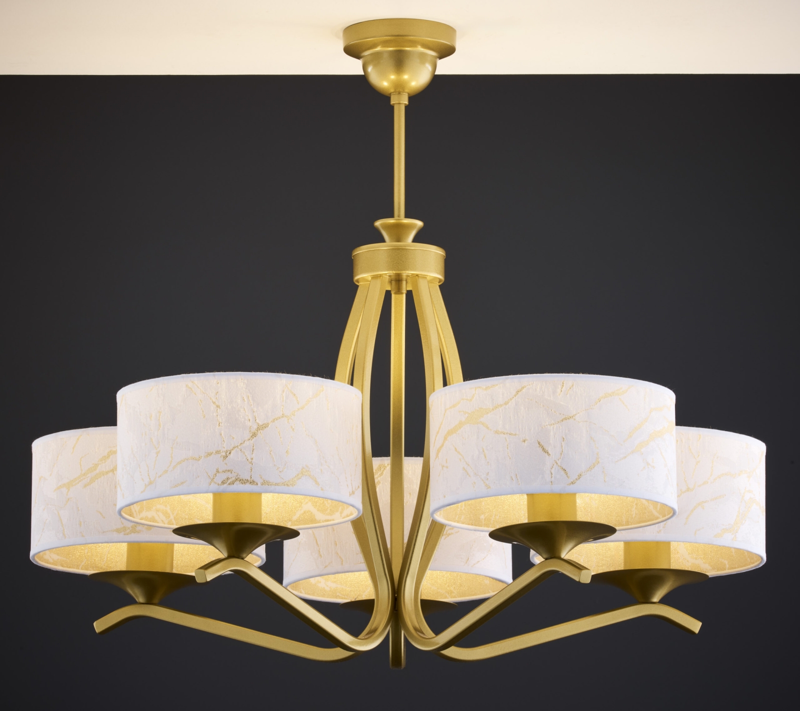 Jupiter 2110 - Lampadario su asta KASZMIR 5xE27/15W/230V bianco/oro/effetto marmo