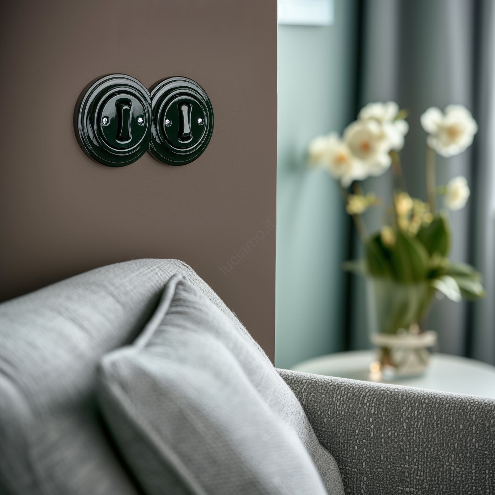 • Kliklap - Doppio interruttore unipolare in stile retrò con placca n. 1, antracite