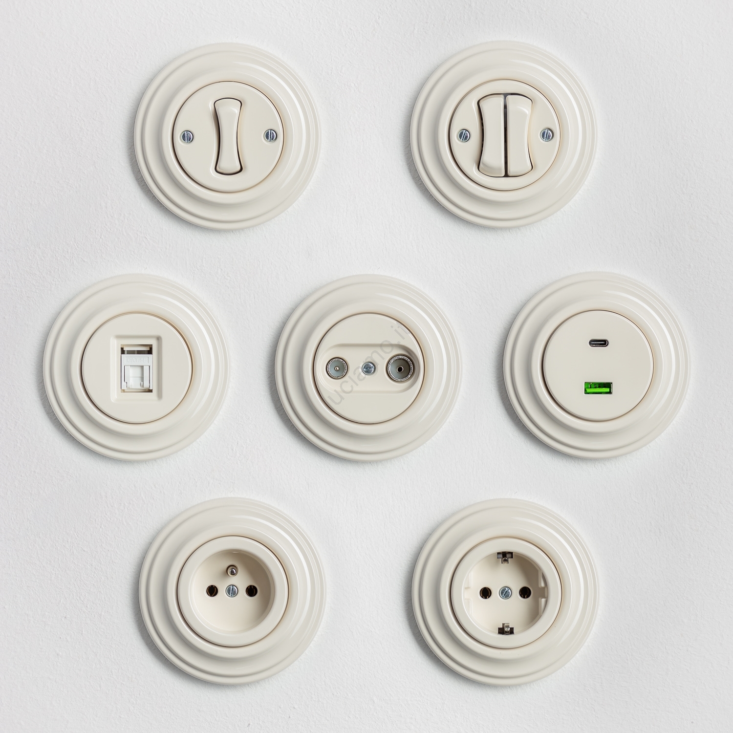 • Kliklap - Interruttore intermedio retrò con cornice n. 7 in ceramica bianca