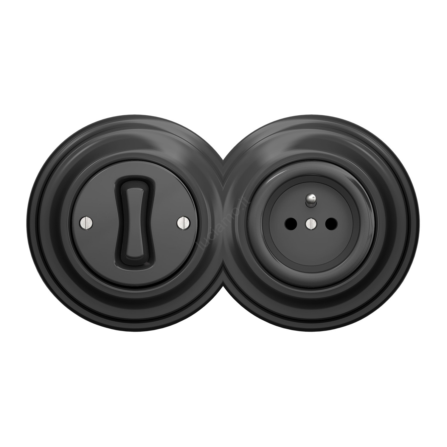 Kliklap - Interruttore unipolare retrò n. 1 e presa 230 V con cornice antracite