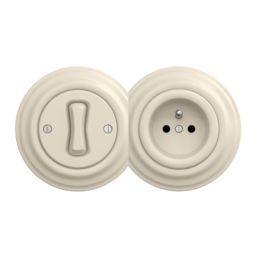 Kliklap - Interruttore unipolare retrò n. 1 e presa 230 V con cornice, beige
