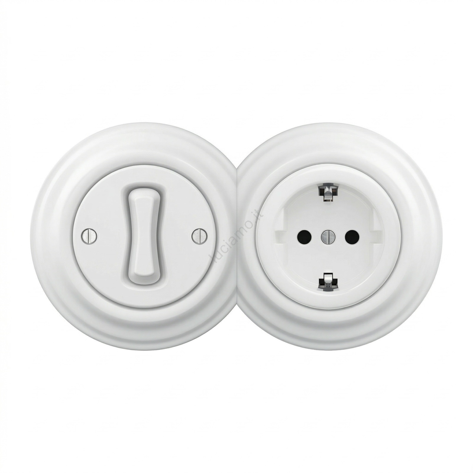• Kliklap - Interruttore unipolare retrò n. 1 e presa SCHUKO 230 V con cornice in ceramica bianca