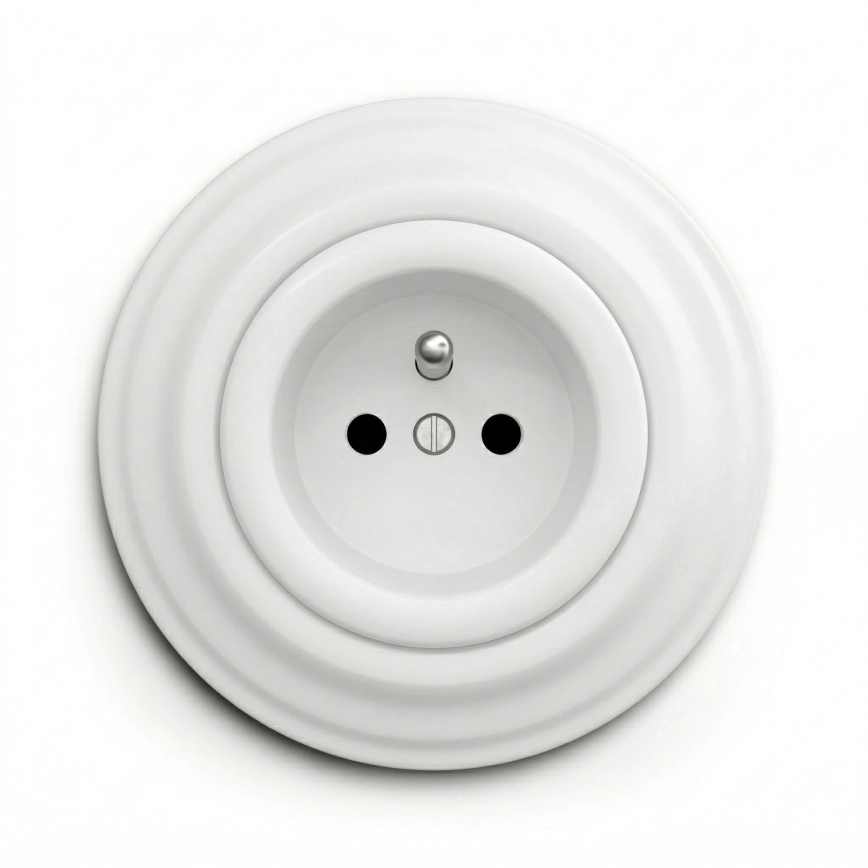 • Kliklap - Presa domestica in stile retrò con cornice, 230 V, in ceramica bianca