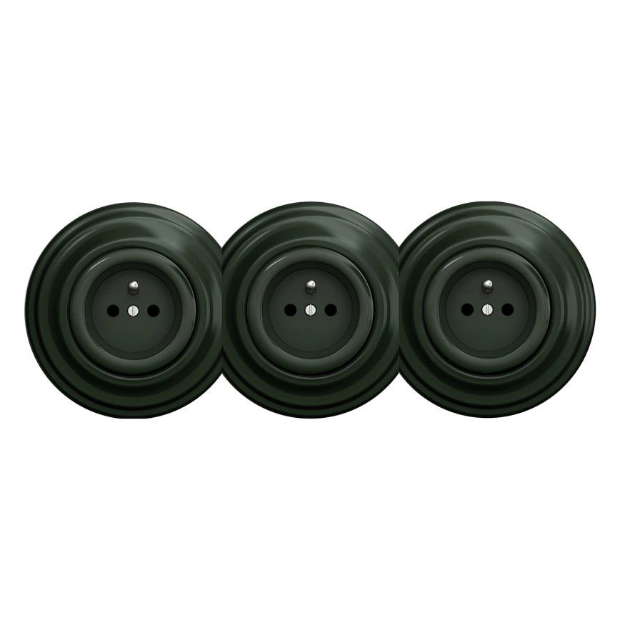 Kliklap - Presa tripla da parete in stile retrò con cornice, 230 V, verde