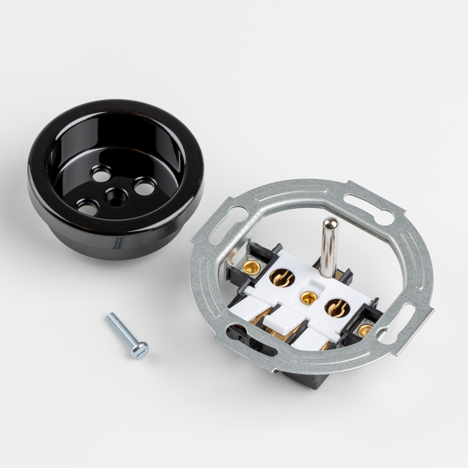 • Kliklap - Presa elettrica da parete doppia in stile retrò per uso domestico con cornice n. 1, nera