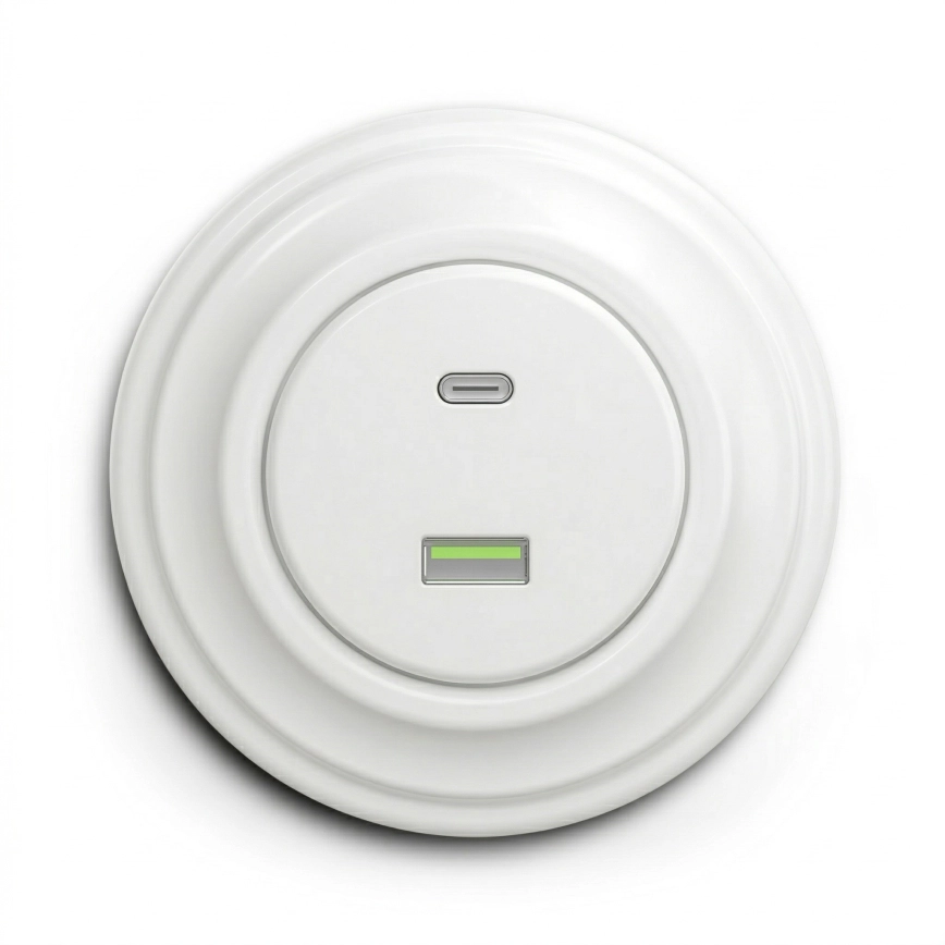 • Kliklap - Presa USB retrò con porte USB-A e USB-C, cornice in ceramica bianca