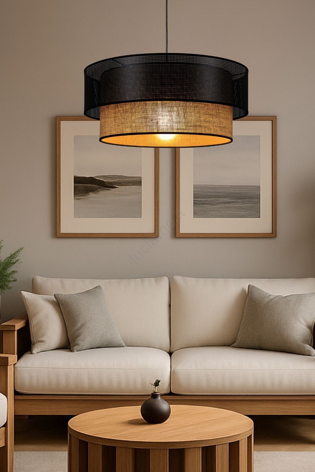 • Lampada a sospensione BORHO con cavo 1xE27/60W/230V nero/iuta