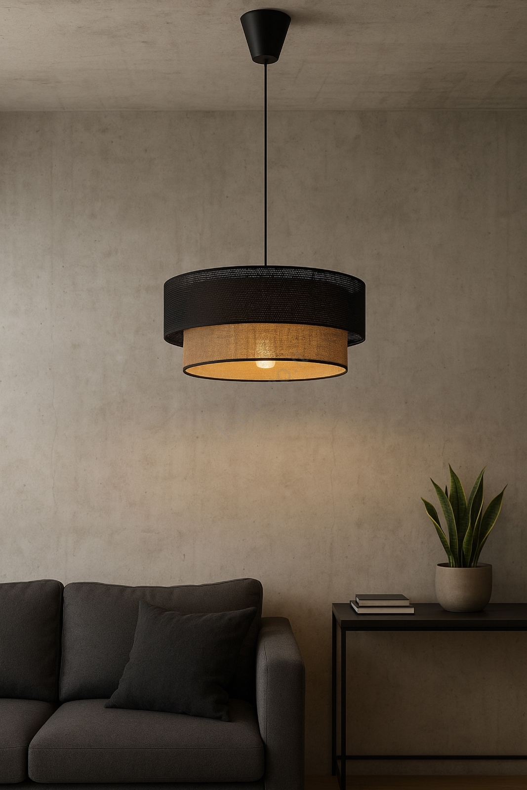 • Lampadario a cavo BORHO 1xE27/60W/230V Ø 40 cm nero/iuta