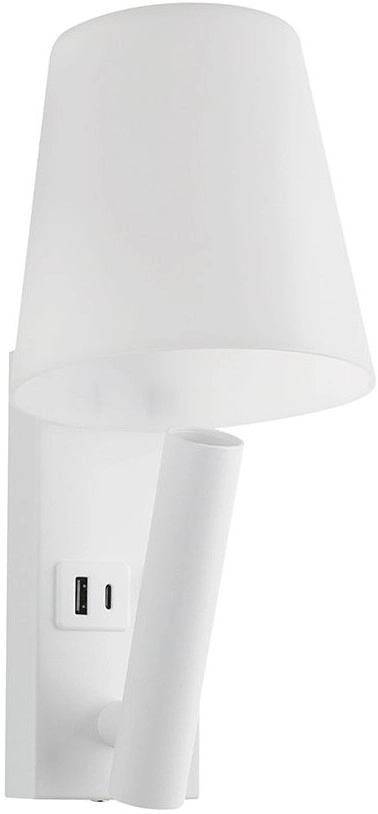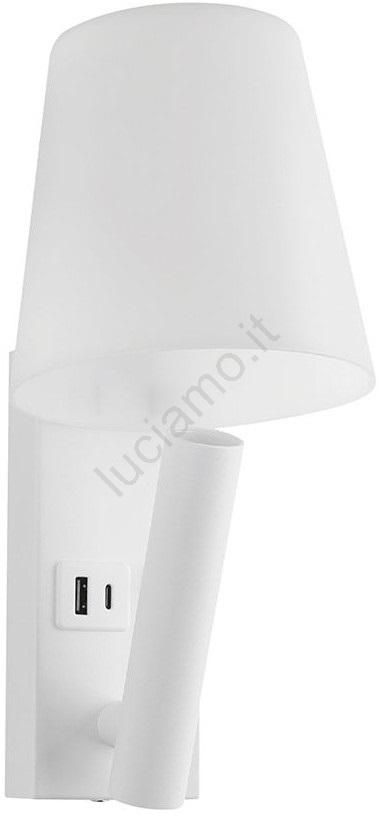 Lampada da parete LED con porta USB, 2 W, 230 V, 3000 K, bianca