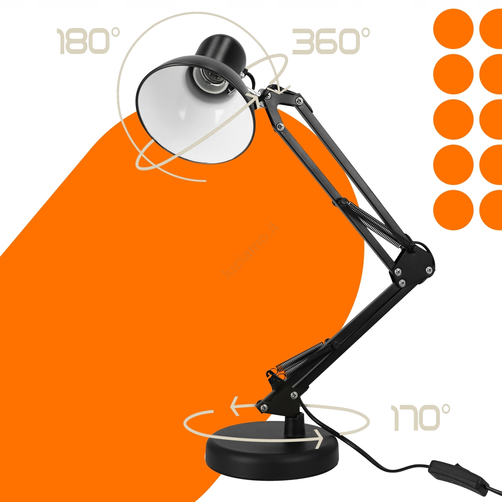 Lampada da tavolo con clip 2 in 1, 1xE27/60W/230V, nera