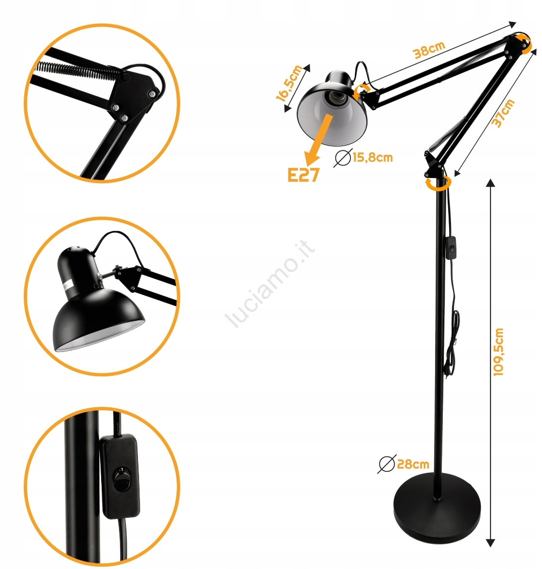 Lampada da terra 1xE27/40W/230V nera