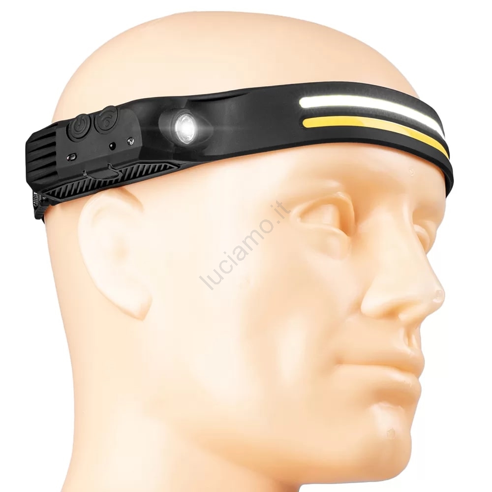 • Faro frontale ricaricabile a LED con sensore di movimento.