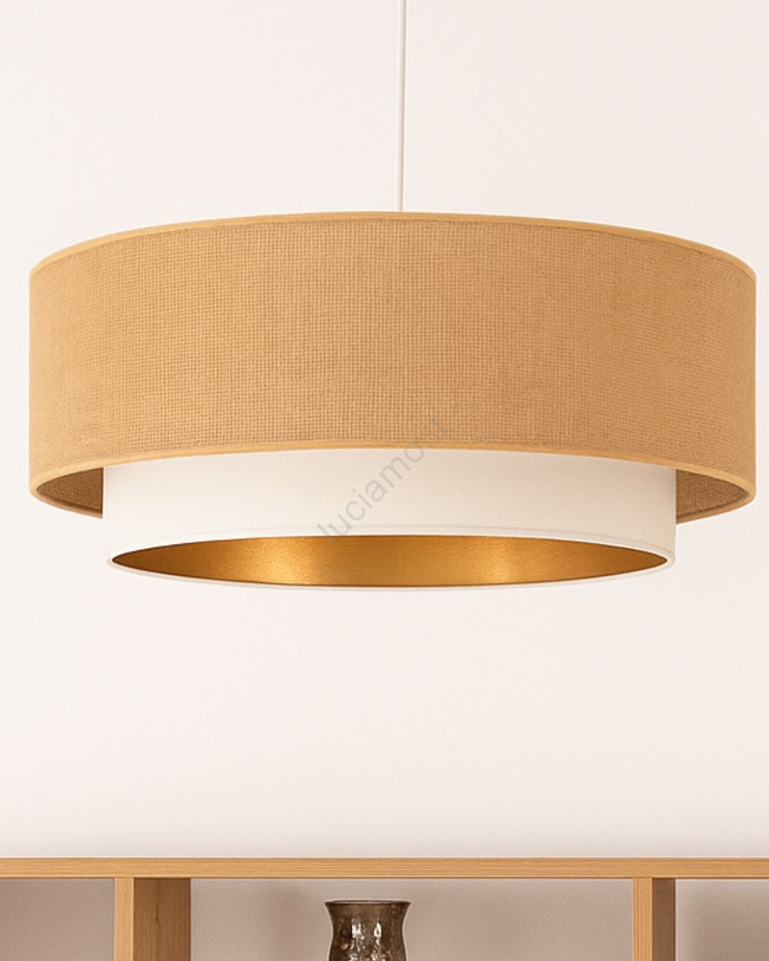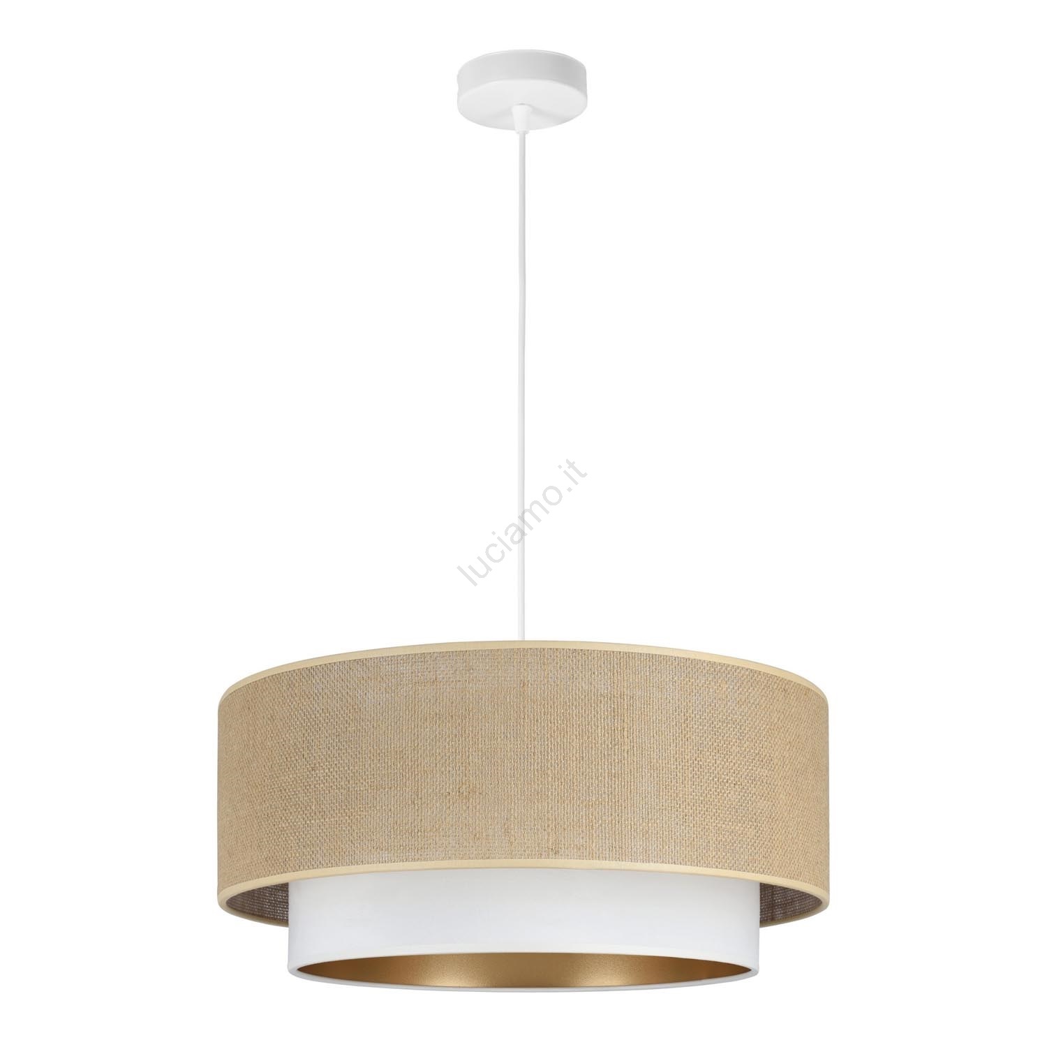 • Lampadario a sospensione con cavo SARTA 1xE27/60W/230V Ø 45 cm bianco/iuta