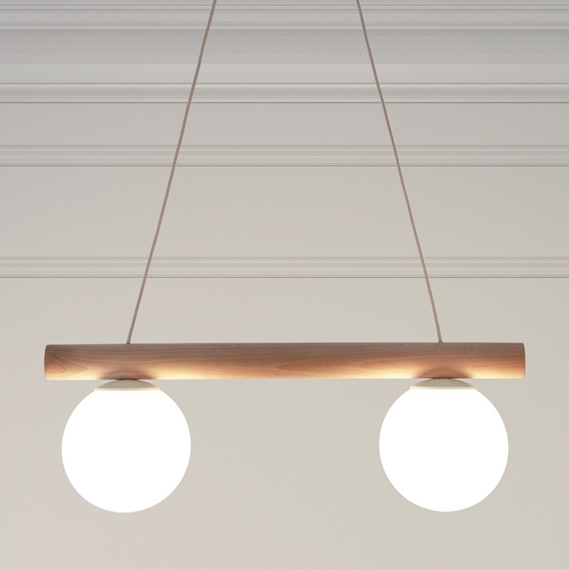 Lampadario a cavo WOODSTOCK 2xE27/15W/230V legno/crema