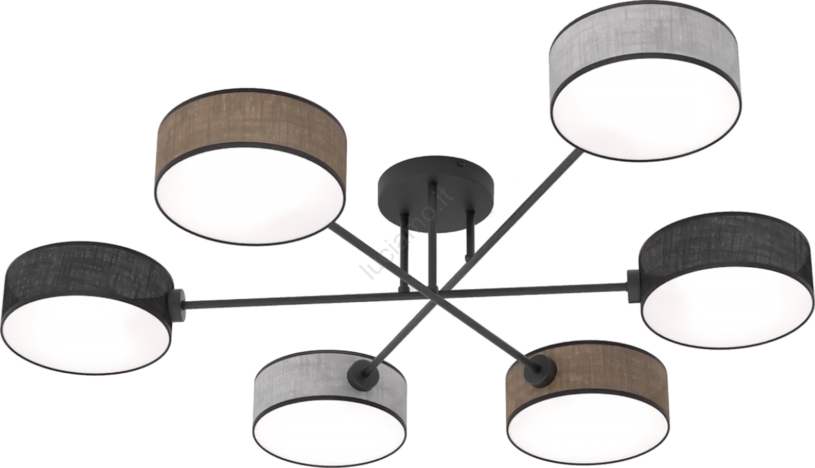 Lampadario a montaggio superficiale MAGA 6xE14/10W/230V nero/marrone/grigio caratterizza un design gradevole e funzionale. Per la lampada è adatta una lampadina con attacco E14. Qui puoi acquistare altre lampadine a prezzi vantaggiosi. Avrai un'aggiunta interessante alla tua casa.